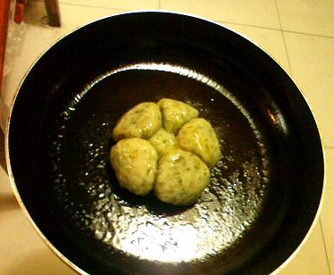 早上妈妈多包了些,剩了几个,晚上我回家吵着要吃,就放锅里煎了。从碗里倒出来,都还团在一起,像朵花儿似的。