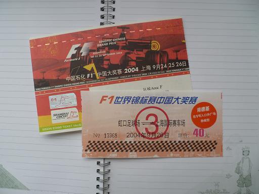 日记本上还夹着F1的门票,那是进入中国的第一年,也就是为了这个,我才死要考上海的大学,笑。
